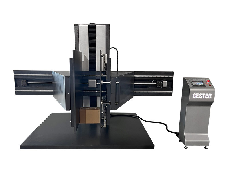 This equipment simulates the clamping conditions that occur when a clamp truck loads and unloads packaged goods. By reproducing the clamping force applied between two plywood plates, it is used to test and evaluate the clamping strength and protection performance of the package and its contents.