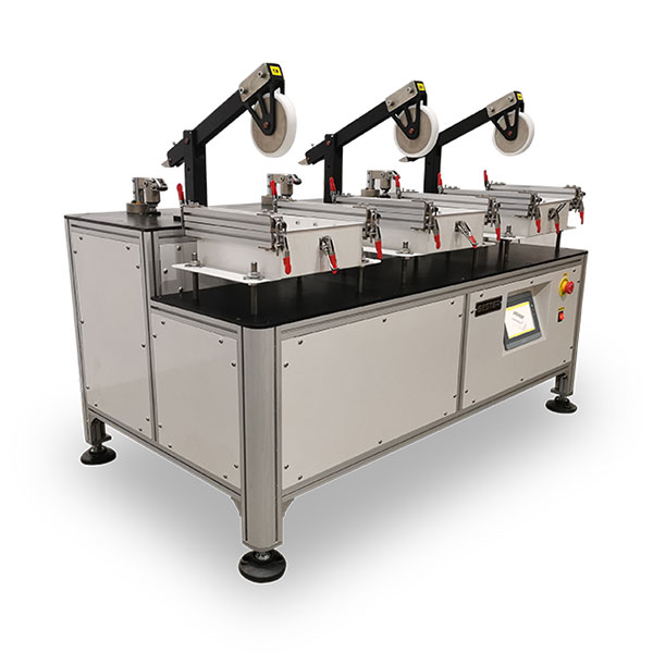 The seam fatigue tester is designed to measure the visual evaluation of yarn slippage and other types of failures in the three most commonly used upholstery seams - warp sewn to warp (wale to wale), filling sewn to filling (course to course), and warp sewn to filling (wale to course). The stresses at the seam are created by imposing a cyclic, impact, and penetrating load which fatigues the seam construction.