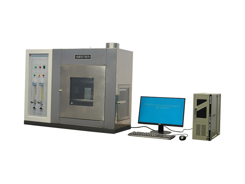 The testing machine is used to determine the impact performance of high-temperature metal melt droplets in protective clothing and the high-temperature protection performance of textiles.